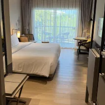 The hotel's location is super convenient – there's a 7-Eleven just a few hundred meters away, and getting a taxi is easy. Downstairs, you'll find coffee shops and restaurants. The gym and overall hotel environment are great too, and it's close to everything. My only small complaint is that the air conditioning was really cold at night, haha. But I guess that's just how it is in Thailand, right?