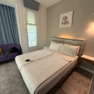 This is a good mini-hotel right on the beachfront of Dongtan, Jomtien's best beach. We really liked the hotel overall. The only minor issue is that twice a week, the neighboring cafe plays loud music until 10 PM. We stayed in a poolside villa, and it was very quiet. Our neighbors were locals, so there were no noisy parties with young people. There's no safe in the room, but theft isn't an issue here. There's also no kettle in the room, but you can get free tea and coffee at the reception. I really enjoyed my stay here, especially traveling with a small child – it was very convenient to go from the beach to the room (for naps/meals/swimming) as everything was easily accessible. All the staff were friendly, and we communicated using a translator. The pool is available all the time, even at night. Everything was great! It's an affordable hotel with a convenient location. There's no breakfast here, but there are plenty of cafes nearby. We went to Jomtien Plaza Resident for breakfast, which was excellent and only 120 Baht – you won't leave hungry.