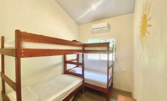 There are two bedrooms with queen beds, and a third room with two twin bunk beds. Each of the bedrooms have large windows, high ceilings and their own AC. There are two bathrooms with showers and hot water.