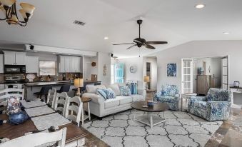 Dockside Dreams is the perfect waterfront house with easy beach & sound access. This stylishly decorated home comfortably sleeps 10; one luxurious king in the master overlooking the water, 3 more queen beds plus a queen sofa sleeper. The fully-equipped kitchen opens up into the living & dining areas, creating plenty of space and an at home feel. The house sits on a deep water canal with easy access to the Santa Rosa Sound. With a public launch nearby, you'll be able to bring your own boat or jet skis or rent them with ease. There is plenty of room in the driveway for a boat or jet ski trailer. Fishing, boating, kayaking & paddle boarding all can be done right from the back yard! Enjoy the sunrise on the back deck and sunsets on the front. Plenty of storage and parking at this newly updated home on a quiet street on Navarre Beach. Just a short walk or drive to the Gulf of Mexico and the sugary sand beaches. Beach towels, beach chairs & umbrellas provided with your stay. 2 pets allowed with $100 pet fee.