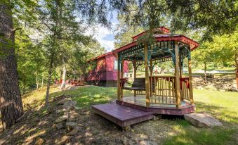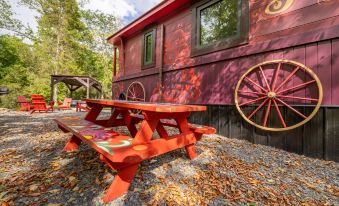 Our Scarlet Gypsy wagon is an extremely unique stay with modern amenities. It is known for its designer touches and comfort, making for the perfect getaway for you and your family!