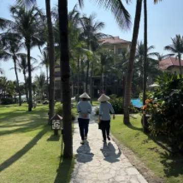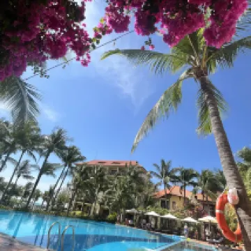 We stayed at this hotel for a week. We arrived two hours before check-in, and they checked us in early without any problems. They charged 2 million dong for an extra night, which was cheaper than what we found on aggregators. The hotel grounds are spacious, with two pools open from morning until 8 p.m. The hotel beach is large, but not always suitable for swimming. The left side has been washed out, with a small cliff, while the right side has a gentle entry into the water. There aren't enough sun loungers for everyone, but that's more of an issue for people who throw their towels on sun loungers in the morning and don't see any all day. There are several restaurants near the hotel, and if you walk a 5-minute walk to the left or right, you'll find more activities. Overall, I liked the hotel.