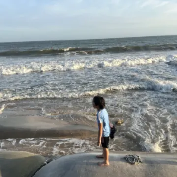The beach is okay, it’s clean, but the waves are too strong for the kids, so you cant really swim there but it’s fine you can just stay at the shore or swim in their pool or hangout on their lawns with their big bean bag chairs.