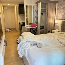 I had a wonderful stay at this lovely hotel. The view on the roof was absolutely amazing. The room was nice and clean. The bed was very hard unfortunately. My back was not happy but I got used to it being the standard in Thailand with hard beds. The staff was super friendly. I had a horrible stay at another hotel so I booked this last minute and went to it. On my way I called and asked if I could leave my luggage since it was about two hours until my check in, they said yes. When I arrived I got upgraded to a room with a nicer view and I got access right away so I was so happy since I haven’t slept all night before. I would come a day stay at this hotel if I come back to Thailand again because of the very friendly and welcoming staffs. Thank you