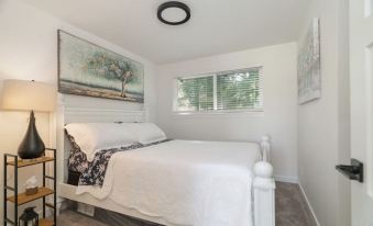 When it's time to turn in for the night, the bedrooms offer sanctuary. The master suite provides an en-suite bathroom with dual sinks and a walk-in shower. The two additional ample bedrooms share a fully updated full bath with a bathtub.
