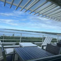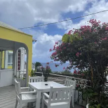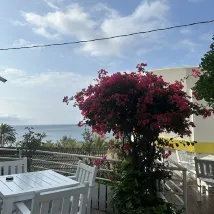 Location by the sea with amazing view. Beach and food/drinks only a short walk away. Nice and helpful staff