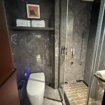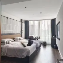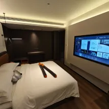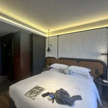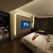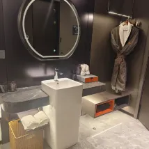 I absolutely loved the room! The minimalist and stylish decor reflects quality in every detail. The bed was so soft, it felt like I was wrapped in a cloud, and I slept soundly. The window-side table and chairs allowed me to work or sip tea while enjoying the view. The amenities, including a TV and mini-refrigerator, make daily living incredibly convenient. The bathroom was beautifully designed, with a bright, practical vanity and mirror. The bathrobes were soft and comfortable, and the toiletries exuded a luxurious fragrance, washing away the day's fatigue.