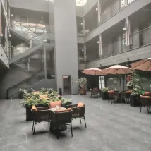 The moment we entered the lobby, we were blown away. The high ceilings and glass dome let in sunlight, creating a truly captivating atmosphere. The lounge area is beautifully appointed, surrounded by greenery and comfortable seating. It's a great place to relax with a cup of coffee, chat with friends, or take photos.