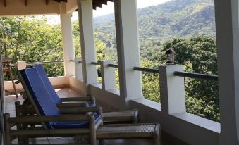 Accommodations feature high ceilings clad in rich tropical woods, complemented with regional art & ceramics throughout. Walls of glass and wrap-around terraces allow breathtaking views of the surrounding ocean, hills, and valleys, uniting you with Nature at your doorstep. Many varieties of birds and animals, including hummingbirds, parrots, butterflies, iguanas, monkeys, mapaches, even ocelots and other wild cats, coatimundi, armadillos, and anteaters inhabit the surrounding hills and valleys of our private preserve.
