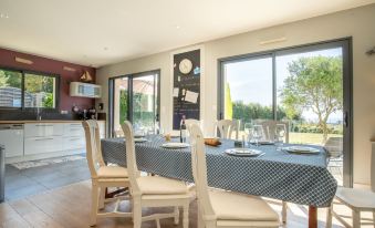 Nous avons été très bien accueillis, la maison est en tout point conforme à la description, très spacieuse, bien décorée, très bonne literie. on s'y sent bien. Equipement complet, rien ne manque, belle salle de jeux. Le jardin clôturé est grand, la vue me