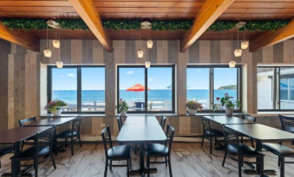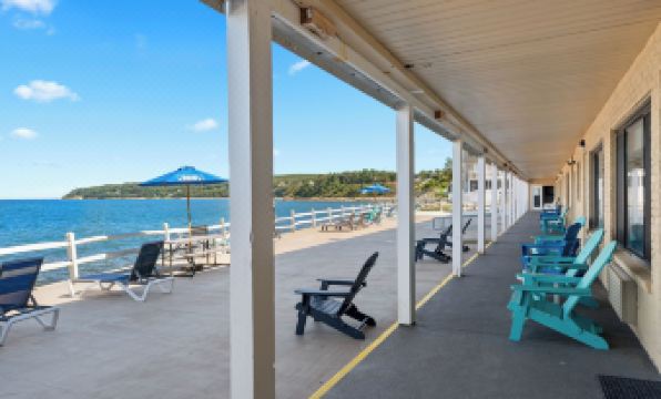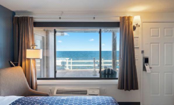 The hotel is located about a 5-10 minute drive just outside of Plymouth. It is in a residential area with nothing else around it but it is right on the beach of Warren Cove. One side is set up as a motel with doors on the outside, and the other side with room doors on an interior hallway. The kids loved watching how high the water came up in the morning at high tide. In the afternoon it is great for walking and skipping rocks, and watching the gulls & sandpipers. It was a bit too chilly to use the outdoor pool, but the indoor pool and hot tub area were great. Both were a bit smaller than expected, but not usually occupied. Continental breakfast is served daily from 7-10 consisting of the usual breakfast pastries, a couple of cereals, and a Belgian waffle maker. Coffee, hot chocoate, tea, apple & orange juices were also available, as well as some yogurts in the fridge. The owners let me know that the restaurant located in the hotel should be open in a few months, and that all the rooms were getting redone in the next year. I already reserved a 2-bedroom suite for next August.