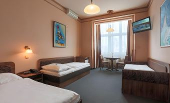 房間設施有年頭了,但乾淨整潔,環境安靜,樓下有餐館,可以享受捷克啤酒。