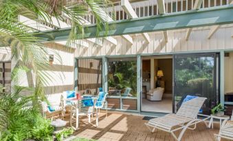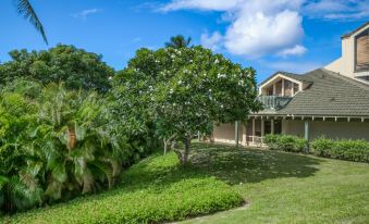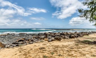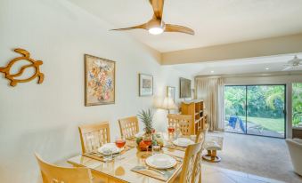 This garden-level condo is located at Poipu Kai Manualoha, a property that's wonderfully located near the very heart of Poipu and just up a garden path from Brennecke's Beach. Here on the beloved south shore of Kauai, you'll be treated to gorgeous sunny weather for swimming, water sports, and strolling on the oceanfront Maha'ulepu Heritage Trail at Shipwreck Beach less than a mile east. If you're a golfer, you'll have your choice of world-class courses nearby, including Poipu Bay (one mile east) and the Kiahuna Golf Club (less than two miles west). Some of the south shore's most beloved restaurants and eateries are also close by, including the famous Puka Dog (a quarter-mile west), Kauai Juice Co. (one mile west), and Beach House Restaurant (two miles west).