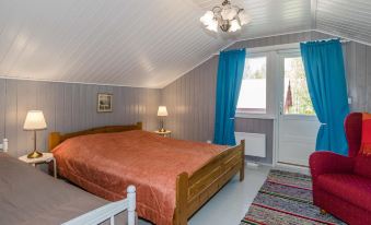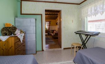 Nice farm-like yard in the middle of the peaceful environment. There is a cooking hut in the yard and a campfire site by the artificial pond. There is also a playhouse in the yard and two rooms (can be used in summer) in the outbuilding. Wireless 4G internet.