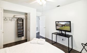 The Master Bedroom includes 1 queen-size bed and a private, NEWLY renovated bathroom with a walk-in shower.