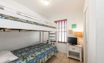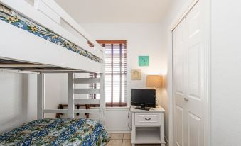 The living room has a comfortable sitting area with plush sofas to kick back and relax after a day in the sun and watch your favorite movie on the big Flat Screen cable TV. Visible from the living room, is your dining/kitchen area. The kitchen includes refrigerator, dishwasher, glass top stove, disposal, standard coffee pot, and blender. For additional sleeping arrangements the living area offers two queen size sleeper sofas.