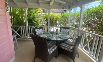 Located one mile north of Holetown, opposite the Royal Pavilion Hotel, on the popular West Coast and close to glorious beaches (200m) and within easy reach of a wide selection of shops, bars and fine restaurants. 5 Porters Court is a luxury 2 bedroom with en-suite bathroom villa with wrap around veranda, spacious open plan living area, well equipped fitted kitchen and private car parking adjacent to the villa. The charming villa is built in traditional chattel house design with high pickled pine ceilings. The living area has two sets of French doors opening onto a wrap around veranda (with gas BBQ) for outside dining and relaxing. The villa is air conditioned throughout.