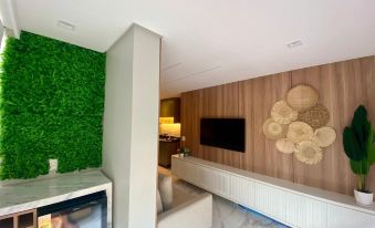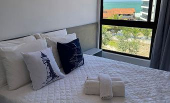 Ficamos no quarto 305, tem uma vista bonita, bem decorado e muito confortável. Tem gelágua, fogão, air fryer, microondas, ar condicionado, um bom chuveiro, cama e sofa cama confortáveis. A estrutura do prédio também é bem legal, com uma piscina no ultimo andar, garagem coberta e muito perto da praia. Andando não dá nem 3 minutos. Em 10 minutos caminhando pela praia você chega às piscinas naturais. Tudo muito agradável.