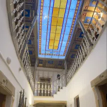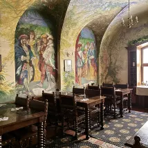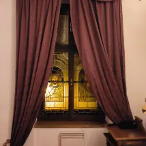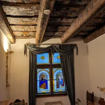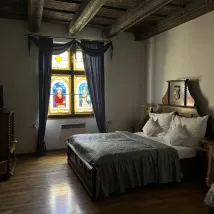 Interior: A quaint hotel with a medieval European feel. The rooms are a bit dark because they don't use LED bulbs, but the stained glass is very beautiful!