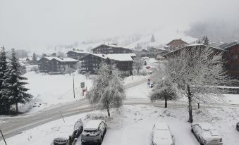 Apartment in large chalet near ski lift (5 mins walk) and village center.