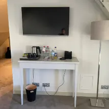 Average stay! Disappointed in room. Chipped paint through the room made it look second rate. Bathroom sink blocked. Heating in bedroom not working. Just 2 tea bags, 2 sachets of instant coffee, only one small bottle of water for two people and no mini fridge. Restaurant is nice, great food and far more in line with what we were expecting at the hotel.