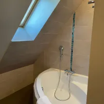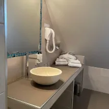 5/5 Excellent Lovely hotel, with all the quirky charm of an old establishment, but including modern cons. Spent 1 night on route to CDG airport from Nice. Guest room 224 was perfect. Up 2 flights of stairs (no lift in this part of the hotel) in a quiet corner, spacious with comfortable king bed and high-end bedding, a window with nice view of some old town buildings, two skylights and a nice sitting area, Original A-frame rafters (so high ceiling) and a pristine, spacious bathroom. The bathtub with both faucet and handheld shower wand was superb – good water pressure, spacious bath for relaxing, and fluffy absorbent towels. No washcloths or face cloths, however. Half a point off for this. In room 224 there was a kettle with tea & instant coffee. 2 bottles of water were provided. The AC worked. The staff agreed to store small items in their refrigerator for us. It would’ve been convenient (and it seems a standard offering of virtually all hotels these days) to have a small fridge in the room. One does not want to run down to staff for every access to their items. The other half point was docked for this. The reception and service from staff was exactly what one would hope for. Make sure you get a map of the area at reception – there are English as well as French versions and they are indispensable for navigating the small town and appreciating what you are seeing. Provins is an authentic, medieval village, nicer in our view, than Aigues Mortes or St-Paul de Vence, if you have been to either. You must view the Tour Cesar and large church behind it lit up at night. We recommend this hotel.