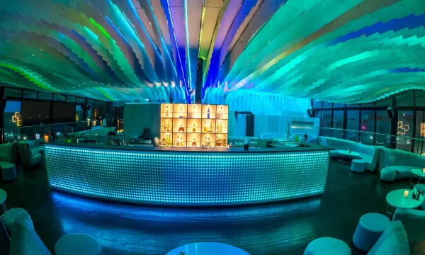 Experience the breathtaking panoramic view of the city at Evviva, our sky lounge. Enjoy a variety of cocktails, delicious food, and a vibrant atmosphere with multi-genre music to enhance your evening.