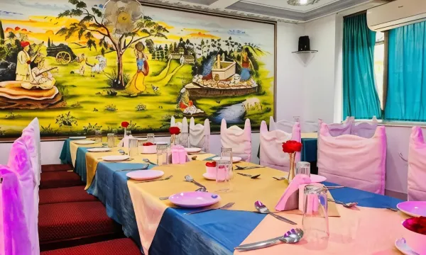 Once you walk into this Hotel, you feel like you are transported to the royal charm of yesteryears, where you will find hand painted murals, very creatively carved intrinsic and artistic work adorning the walls of the Reception and the stairway leading up to the first floor. The staff were very helpful and receptive, eager to chat and share information about the surrounding areas and offer suggestions on things to do within the Hotel as well as nearby. The Restaurant also further displays some hand painted artistic work and offers some of the best authentic Rajasthani food in the area; especially Malpua, perfect for those who crave dessert, but not one that is excessively sweet (it is dunked in pure ghee, but do enjoy and savor it, you certainly won't get this elsewhere, so don't count the calories!). In the early hours of the morning, if you're lucky, you will spot a whole lot of Peacocks near the main entrance, majestically walking around the courtyard and beautifully displaying their colorful feathers, it truly is a remarkable sight! The rooms are quaint and still retain old world charm, the beds are massive (can comfortably accommodate a couple and a child), although for the washrooms I'd recommend, they are in need of an upgrade (most of the plumbing and fixtures need urgent change, some even damaged and missing, like the tissue holder and faucet).