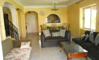Situated in Marina North Coast, The Marina Villa overlooks lush green gardens with a homey style. It features an outdoor swimming pool with a sun-lounger terrace. The air-conditioned villa comes with 5 bedrooms and 4 bathrooms. It includes a spacious living area complete with a dining area. The kitchen is fitted with a fridge and a stove. The Villa is 23 minutes away from Alamein International Airport and 10 kilometers from Alamein. Free private parking is possible on site.