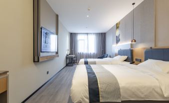 到達酒店後,工作人員服務態度親切,辦理入住手續快速高效。還送了燒水喝的桶裝水,還幫忙把行李送到房間,店長還特意送上了一個山東蘋果給我品嚐,超級好吃,很甜,房間乾淨整潔,佈置得很温馨,設施齊全且品質高,床品舒適,讓我一夜好眠。