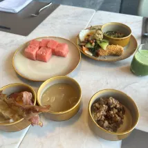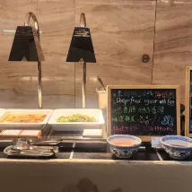 3) However, the restaurant staff, particularly at breakfast, often seemed quite inexperienced – I even wondered if some were interns! Some lacked smiles, others showed poor service awareness (e.g., not proactively clearing dirty plates), and some were extremely slow. At one point, my three-year-old was eager to follow his older siblings upstairs, leaving a significant amount of breakfast still on his plate. I asked if I could take it with us, genuinely wanting to avoid waste (specifically referring to items untouched or only partially eaten by the child). A young girl in glasses wearing an orange jacket flatly replied, 'No, just leave it on the table; they'll throw it away anyway.' This highlights that rules should serve people, not the other way around. Humanized service is a fundamental standard in modern hospitality.