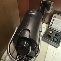 The next morning, before checking out, I wanted to have a cup of coffee. After fumbling with it for about five minutes, I discovered the coffee machine was broken.