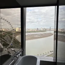 Absolutely fantastic! The facilities and service were excellent, and it offered great value for money. To my surprise, the river view room also offered a glimpse of the Ferris wheel, and the night view was absolutely stunning when it lit up. It's also connected to a nearby commercial area which, though not overly bustling, was still pleasant to explore and added to the convenience.