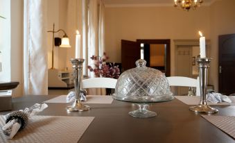 We had a truly wonderful stay at Villa Le Palais in Quedlinburg. Our apartment ("Solen Apartment") was spacious, tastefully furnished, and fully equipped – perfect for both relaxing and self-catering. A real highlight was the small private terrace attached to the apartment. We enjoyed both breakfast and dinner out there, with a lovely view of the beautiful castle in the background. A very special atmosphere right in the heart of the town. The location is ideal – quiet and peaceful, yet just a short walk from the historic town center and its charming cobblestone streets. The host was friendly and helpful throughout our stay, and on-site parking worked smoothly. We can highly recommend Villa Le Palais – and we would love to come back.