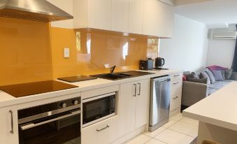 Is there a restaurant in 3-Bed Queenstown Apt with Balcony, Close to Town?