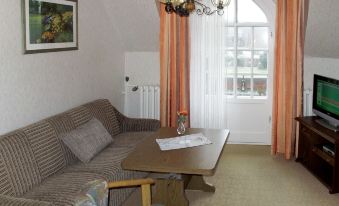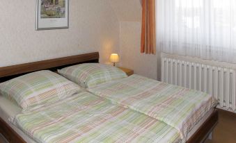 Historical apartment house "Am Park", from the 18th century. 200 m from the centre of Raben Steinfeld, on the outskirts, 5 km from the centre of Pinnow, 10 km from the centre of Schwerin, 250 m from the lake. For shared use: property 2'500 m2 with lawn and trees. In the house: storage room for bicycles. Parking on the premises. Supermarket 2 km, restaurant 400 m, bus stop "Raben Steinfeld Oberdorf" 400 m, sandy beach "Schweriner See" 4 km, grass beach "Pinnower See" 5 km. Please note: the owner lives in the same residence. Natural bathing area at Lake Schwerin 250 m. E-bikes can be charged in the garage. "Am Park", 2-room apartment 37 m2 on 1st floor, south facing position. Practical furnishings: living room with satellite TV and radio. Exit to the balcony. 1 double bedroom with dining table and kitchen corner. Small, open kitchen (2 hot plates, toaster, kettle, microwave, electric coffee machine). Shower/WC. Oil heating. Carpet. Small balcony, south facing position. Balcony furniture. Facilities: Internet (WiFi, free). Please note: non-smokers only. Smoke alarm.