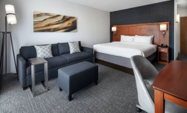 I was nervous that a hotel near the highway would be noisy but it was surprisingly quiet. We asked about this and were told it wasn’t an issue, which proved true, but I think an inside room facing the pool may have been slightly better. Anyways no issue there. The hotel lobby area was fine, the hallways were a little tired but not bad. The room tho was very nice, new carpet and finishes with comfy beds and new everything. The overall experience didn’t get 5 stars but the room does. My two complaints were an unexpected $15 per night parking charge. Up the rate or make this known pre-booking. Please don’t surprise me with this on arrival. Also, very strangely, our free breakfast was for 1, not all 3 of us. The ladies at the restaurant had no explanation for this except that maybe it had to do with the rate we booked. When the room was booked for 3 people and includes free breakfast it seems logical we wouldn’t have to decide who eats and who goes hungry until we make other arrangements. The lonely breakfast sandwich was quite good, but a bit pricey as you might expect from a hotel offering. I suppose I would have paid for my wife and daughter to have something from there as well but there are better more affordable options nearby. So we shared (you thought I would cruelly just eat in front of them didn’t you lol) and got something elsewhere. So on that front breakfast gets 2 stars only because the 1/3 of it we got was tasty.