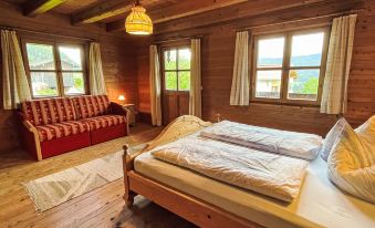 Very quiet and idyllic double wooden house over 2 floors. Hosts very friendly. Fireplace can be used. Everything you need every day is available in the house (kitchen, WiFi, blanket, etc.). Hosts also have a café where you can enjoy the view in the aftern