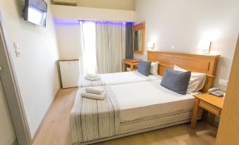 CITY PLUS HOTEL provides flawless service and all the necessary facilities for visitors.Remain linked during your visit by utilizing the complimentary internet access available.Discovering Rhodes becomes even more accessible, thanks to the car hire amenities provided at the hotel.Effortlessly plan your daily activities and travel requirements with concierge service, luggage storage and safety deposit boxes provided by the front desk services. Securing top-notch tickets and reserving prime dining spots become effortless through assistance from the hotel's tours. Repeatedly enjoy your best-loved attire with the aid of the laundry service available at CITY PLUS HOTEL. During leisurely days and evenings, in-room amenities such as room service and daily housekeeping enable you to maximize your stay in the room. For minor or impromptu requirements, the convenience stores can promptly cater to them without the necessity of stepping out from the hotel. The hotel is completely smoke-free. In limited designated zones, smoking is exclusively permitted.Crafted for coziness, every guestroom provides an array of features, guaranteeing a tranquil night's sleep while maintaining the level of comfort.For an elevated experience at hotel, select rooms are equipped with air conditioning to improve your stay. At CITY PLUS HOTEL, a selection of rooms can be found that showcase unique design elements such as a balcony or terrace. Expand your in-room entertainment choices with various amenities, such as television offered in certain accommodations.In select rooms, the hotel offers visitors access to a refrigerator.It is worth noting that certain guest bathrooms feature a hair dryer and toiletries for your convenience. Each morning at CITY PLUS HOTEL, a scrumptious, homemade breakfast kick-starts the day.Experience a fantastic evening effortlessly! Relish an entertaining night without venturing beyond the confines of the bar. During your stay at hotel, an array of engaging activities and amenities guarantees a delightful experience. During your stay, the hotel provides direct access to a beach, ensuring you remain near the sea throughout your visit.