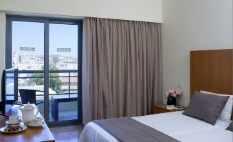 Stayed at the hotel for 4 nights. Upon arrival, we were met by a lovely receptionist. There is a lift to the rooms. We were on the 4th floor. The bedroom was spacious however could do with a deep clean and refurb. There were parts of the wall that were damaged and the shower in the bathroom kept leaking under the door when in use. We had a balcony but wasn’t wide enough to put a chair to sit out and you overlooked another hotel, but was nice for the breeze. The bed was very comfortable.