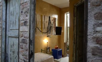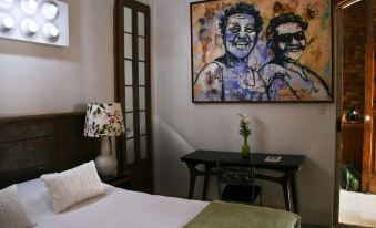 My room was accessible in the foyer-like lobby adjacent to the art gallery. The door appears to be an extension and people may try to walk-in so best to look your door with a little turn-key in a key hole. My room was large and fit a king bed with room for a night stand a a desk. The bathroom was sizable also. There's a door covered in small mirrors that open to a very cute private patio. Also there are literary quotes printed on the walls from a popular author.