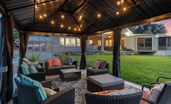 Large groups love this spacious retreat—perfect for reunions & weddings on 1+ acre, 27 min from SLC! Newly furnished with upscale style, includes a main house, 1–2 apts downstairs & a cottage across the lawn. Sleeps 30+ with extra space for cots/mats. Tons of parking. Enjoy cornhole, badminton, games, puzzles & nine square on request. No need to travel far for the ideal group getaway! Features 4 kitchens, a huge deck, fire pit, 8.5 bathrooms and room for RVs/tents. Relax, connect, and make memories.(Hosts have a small apartment in the main house with our own entrance that is private from the main house).About pets:Pets allowed: dogs less than 50 lbs per pet (limit 2 pets total).About checkOut:Check out before 10:00 AM.About children:Children allowed: ages 0-17.About checkIn:Check in after 4:00 PM.About smoking:Smoking is not permitted.About minBookingAge:Minimum age to rent: 18.About events:Events allowed: family gatherings, birthday parties, weddings.Maximum event attendees: 35.