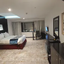 This was the most disappointing hotel I stayed at during my month-long business trip in Riyadh. The hygiene wasn't a major issue, but the facilities were quite old. In terms of service, I booked a king-sized bed but was given a twin room. Due to a flight delay, I arrived at the hotel at 4 AM, and the staff member said we could have a complimentary late check-out until 4 PM. However, a female staff member called me in the morning to say the latest we could check out was 1 PM. If there are internal coordination issues, please don't inform guests in advance next time. The breakfast was quite poor, with few options and low quality.
