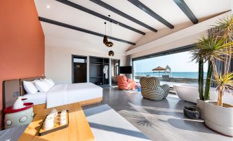 [Open the window and see the sea, boundless view] Every room is located on the beach. The large floor-to-ceiling windows frame the blue sea and sky into a flowing picture. The dawn and the golden sunset are all within sight. The hotel selects international high-end bedding and eco-friendly materials, and combines modern minimalist design with marine elements to create a private space that is both aesthetically pleasing and comfortable. Open the window and see the sea, listen to the waves at night and sleep, allowing the body and mind to completely relax in the natural rhythm.
