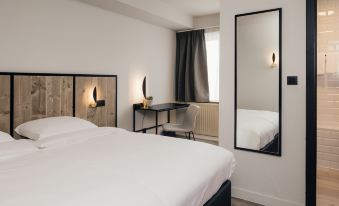 Pleasant hotel with a friendly welcome. Easy and free parking. Some downsides for the room: floor covering damaged in certain places, no tissues or trash can in the bathroom, toilet too close to the bathtub. The breakfast is plentiful and varied. The Arthur restaurant is cozy and the dishes are decent but a little overrated in terms of quality/price.