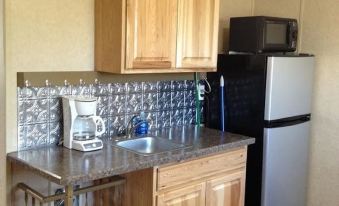 You will find a coffee maker, microwave and refrigerator for you use. There is not a cook stove. Roy Grocery and Hardware hosts a small deli (somewhat like a mini Subway.) The Legion Bar provides a limited menu. The Roy Bar has convenience type foods, as does the Bohemian Corner Store.About pets:Pets allowed: limit 1 total.About checkOut:Check out before 11:00 AM.About children:Children allowed: ages 0-17.About checkIn:Check in after 4:00 PM.About smoking:Smoking is not permitted.About minBookingAge:Minimum age to rent: 18.About events:No events allowed.