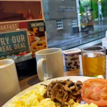 Good location, room had essentials. Left tag for towels to be changed, bins emptied & tea & coffee replaced when used. We were there 4 nights & none of the above was done! Breakfast was adequate but over priced. Woman on breakfast was abrupt & rude, I think her name was Raza. Girl on reception, Sapana, however was very good. If I was desperate I may book again but will go to Premier Inn next time.