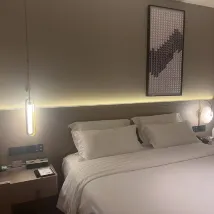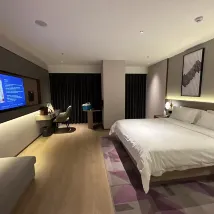 The room was incredibly spacious and felt brand new. The bed was super comfortable, completely smoke-free, and the room had a lovely scent. The front desk staff were very warm and welcoming during check-in, and they even offered a small welcome gift. I honestly feel it rivals many five-star establishments. There's a street right next to the hotel that's entirely lined with seafood BBQ restaurants, making dinner options incredibly convenient in the evenings.