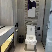 The hotel is brand new, and both the ambiance and cleanliness are excellent. It was my first time seeing a square toilet, which was quite a novelty, haha! A particular highlight for me was the background music in the bathroom – that was a fun surprise! The breakfast selection was decent, though I was a little disappointed they didn't have my favorite cherry tomatoes. Unfortunately, the in-room amenity delivery service wasn't operational yet.