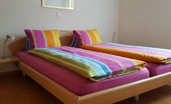 The modern and tastefull furnished 2,5 room appartment (50 m2) on 2nd floor has 1 doubleroom, 1 livingroom with 2 sleeping areas, kitchen, shower/toilet. On the ground floor there is a storage area for ski equipment. The balcony on the south side gives you a wonderfull view to the mountains. Private parking space next to the house.